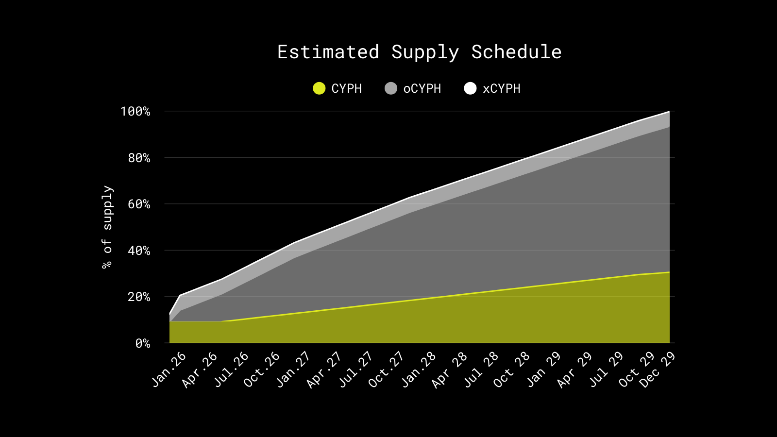 | Community Rewards | 65% | 650,000,000 | Distributed over 4 years, all in oCYPH. |